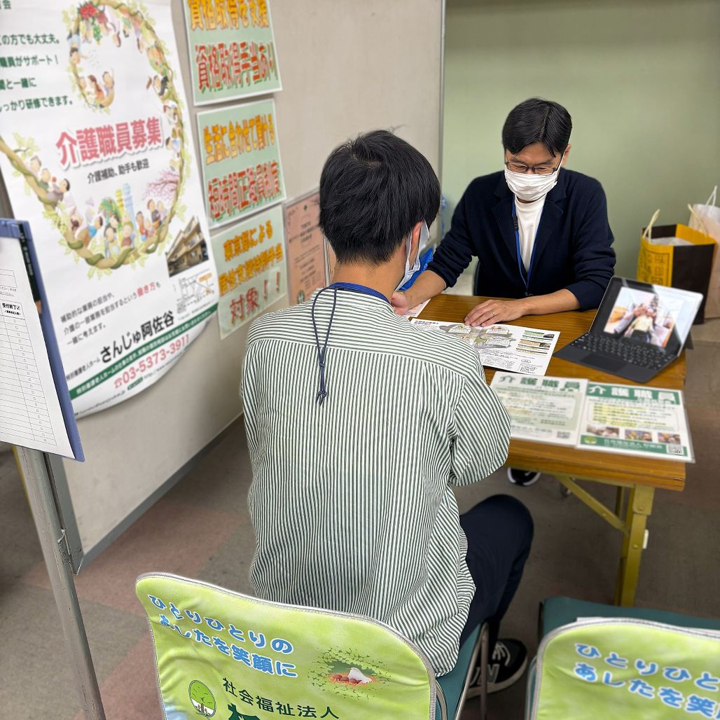 先日、杉並区と新宿ハローワーク主催の『杉並区介護のおしごと就職相談・面接会』に参加しました。 杉樹会のほか、杉並区内の30程の事業所が集まり、就職相談や面接が行われました。 当法人ブースにも介護のお仕事に興…